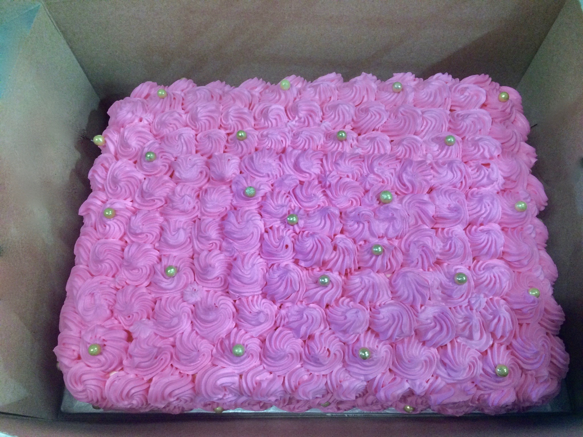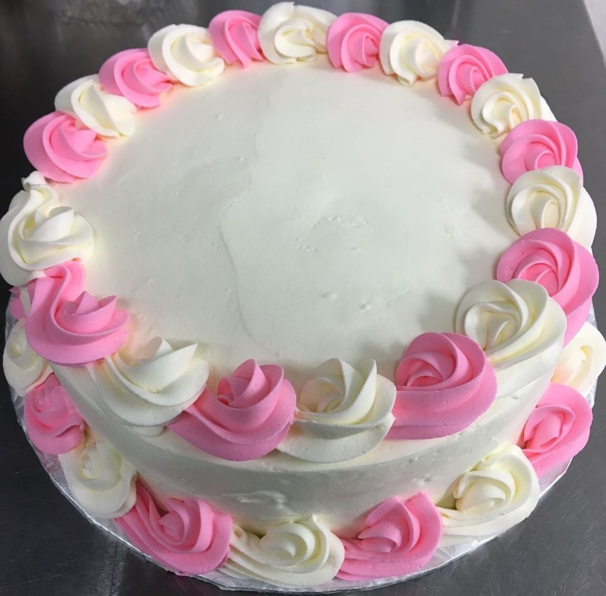 Pink & White Rosette Trim Cake
