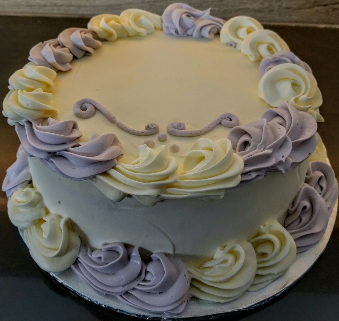 White & Purple Rosette Border Cake